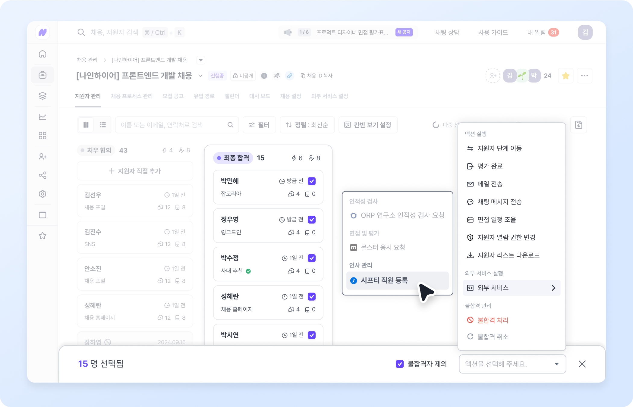 인력 관리를 위해 시프티를 활용 중이라면, 최종 합격한 지원자의 데이터를 시프티로 간편하게 전송해 보세요.