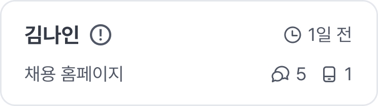 칸반 보드의 지원자 카드를 통해 중복 지원 여부를 쉽게 파악할 수 있습니다. 중복으로 지원한 이력이 있는 지원자 카드엔 아래와 같은 ( ! ) 기호로 표기됩니다.