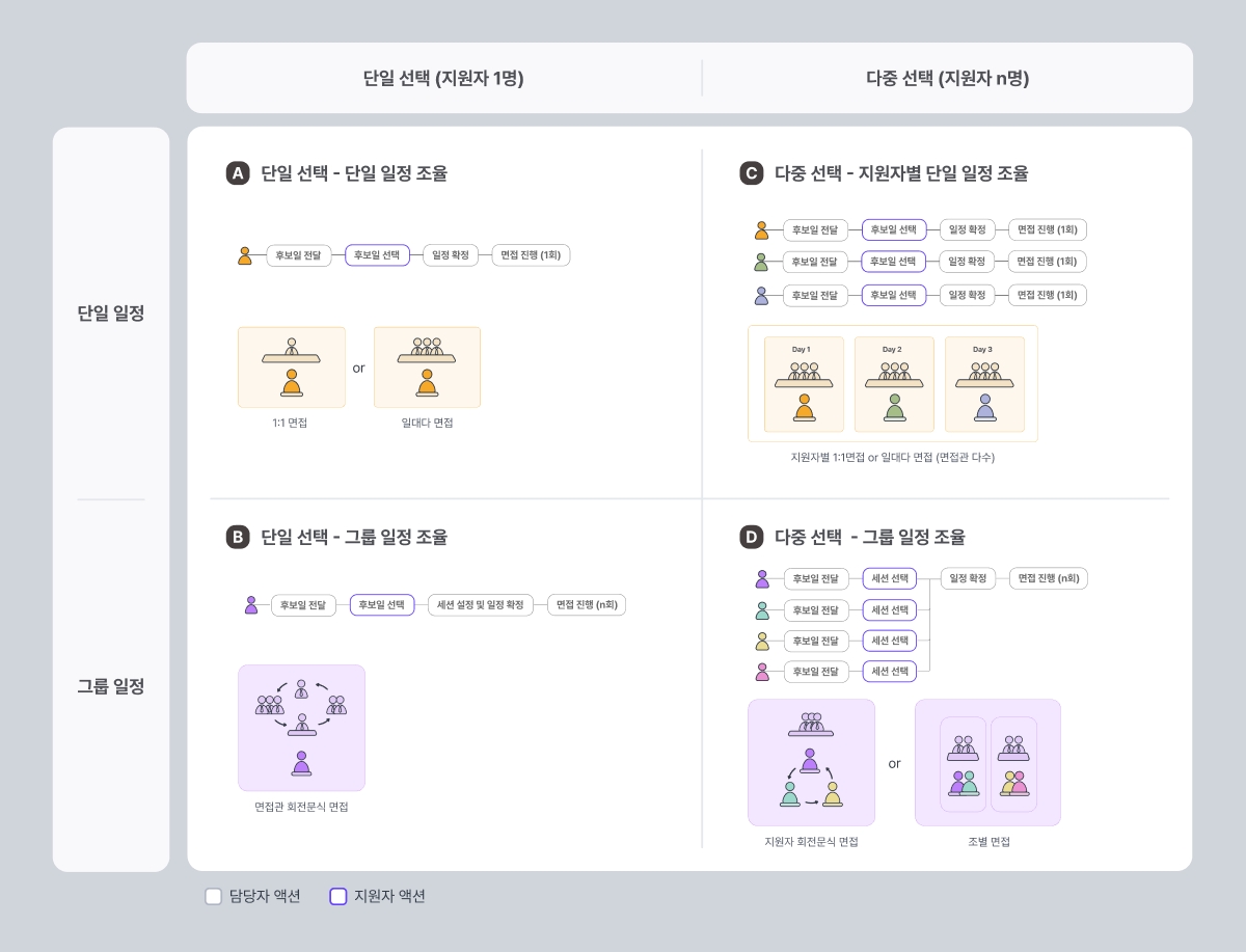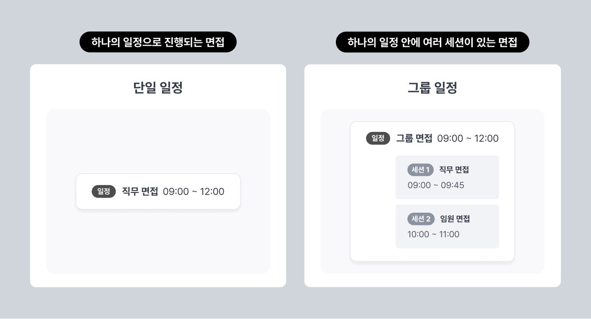 이번 업데이트를 통해 일정 조율 기능이 대폭 확장되어, 보다 다양한 면접 운영 방식에 맞춰 일정을 더 빠르고 효율적으로 관리할 수 있게 되었습니다.
