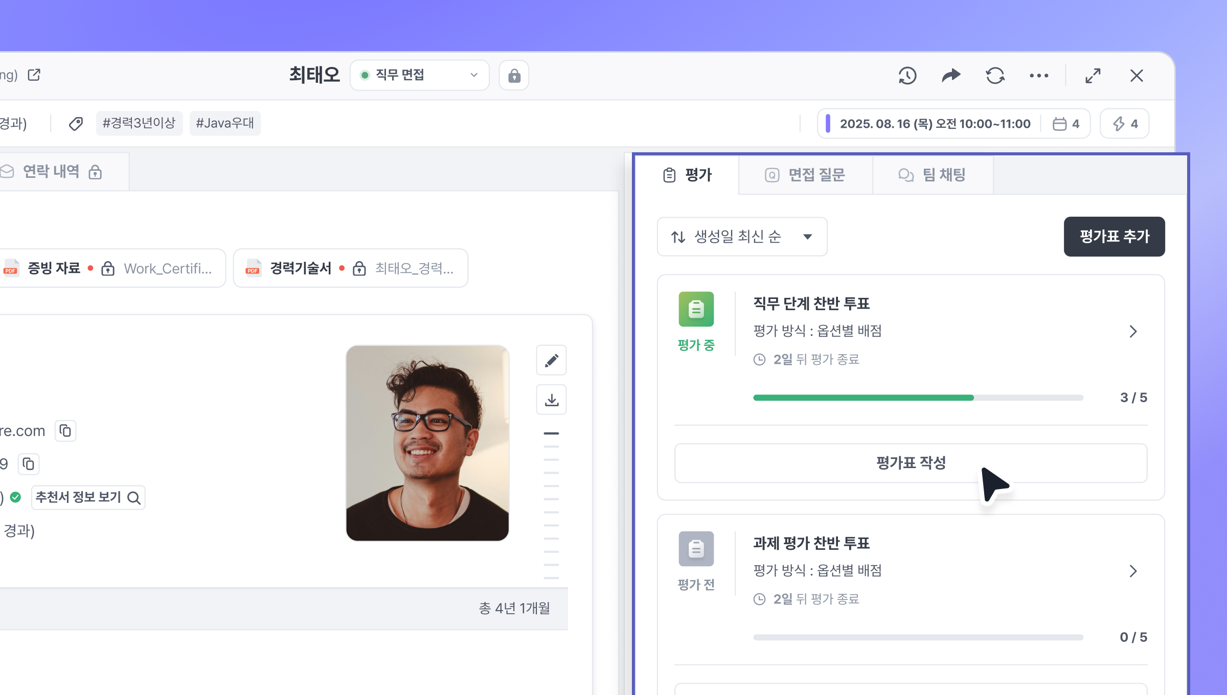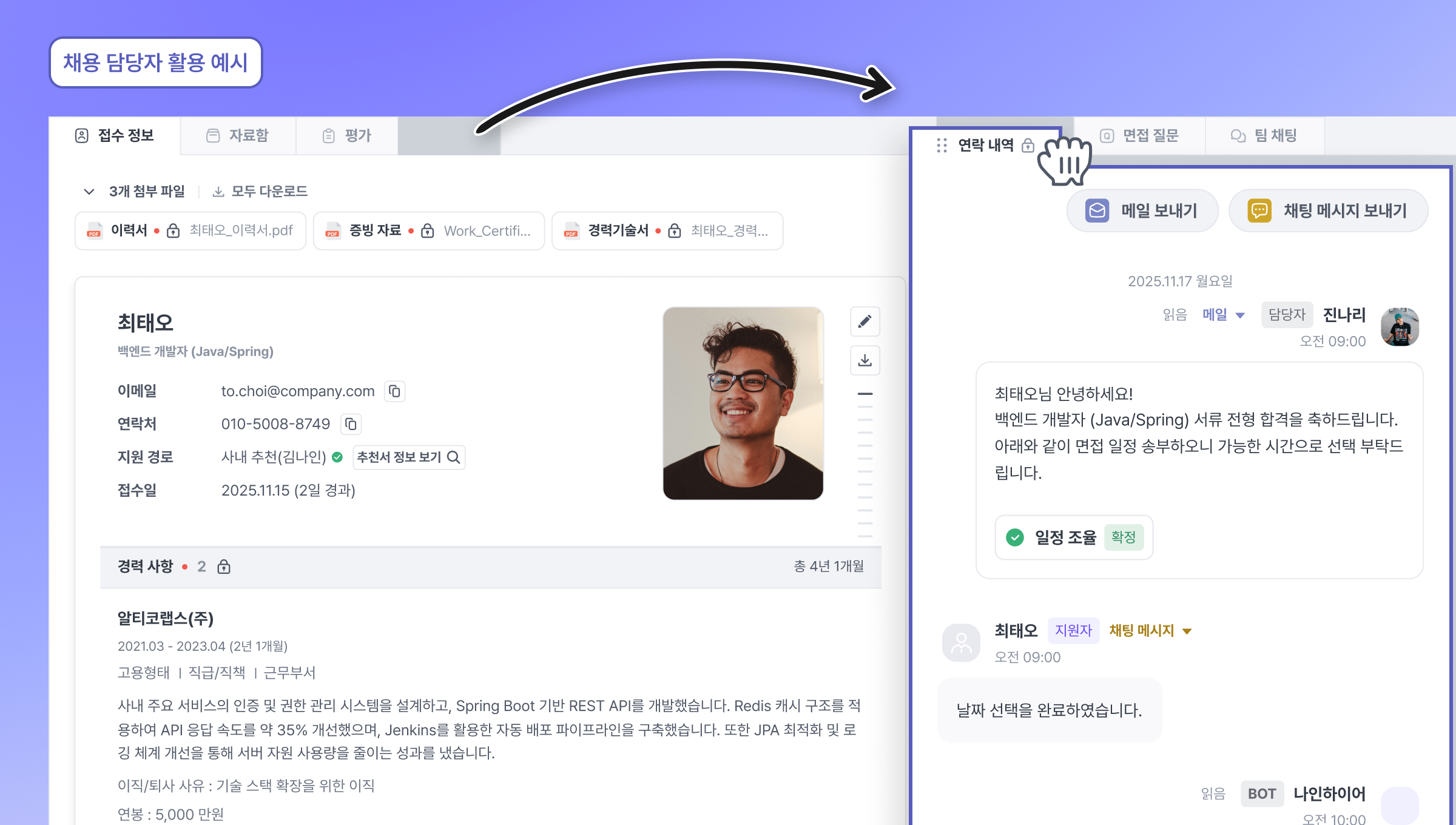 이제는 이전보다 훨씬 더 빠르게 지원자에게 연락을 보낼 수 있고, 현업 부서에 평가를 요청할 수 있게 되어 편의성이 크게 향상되었습니다.