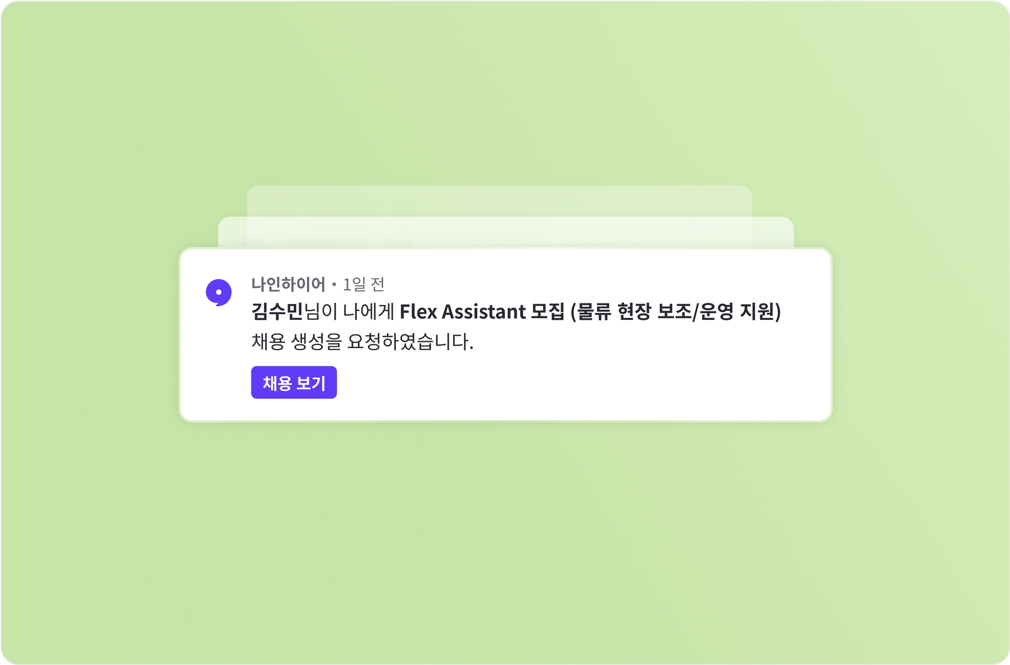 워크스페이스의 멤버가 관리자에게 채용 생성 승인 요청을 보내면 할당된 관리자에게 채용 생성 요청 알림이 발송됩니다. 해당 관리자는 이메일, 슬랙, 앱 푸시 알림 등을 통해 알림을 받으며, 검토 후 요청된 채용을 승인할 수 있어요.