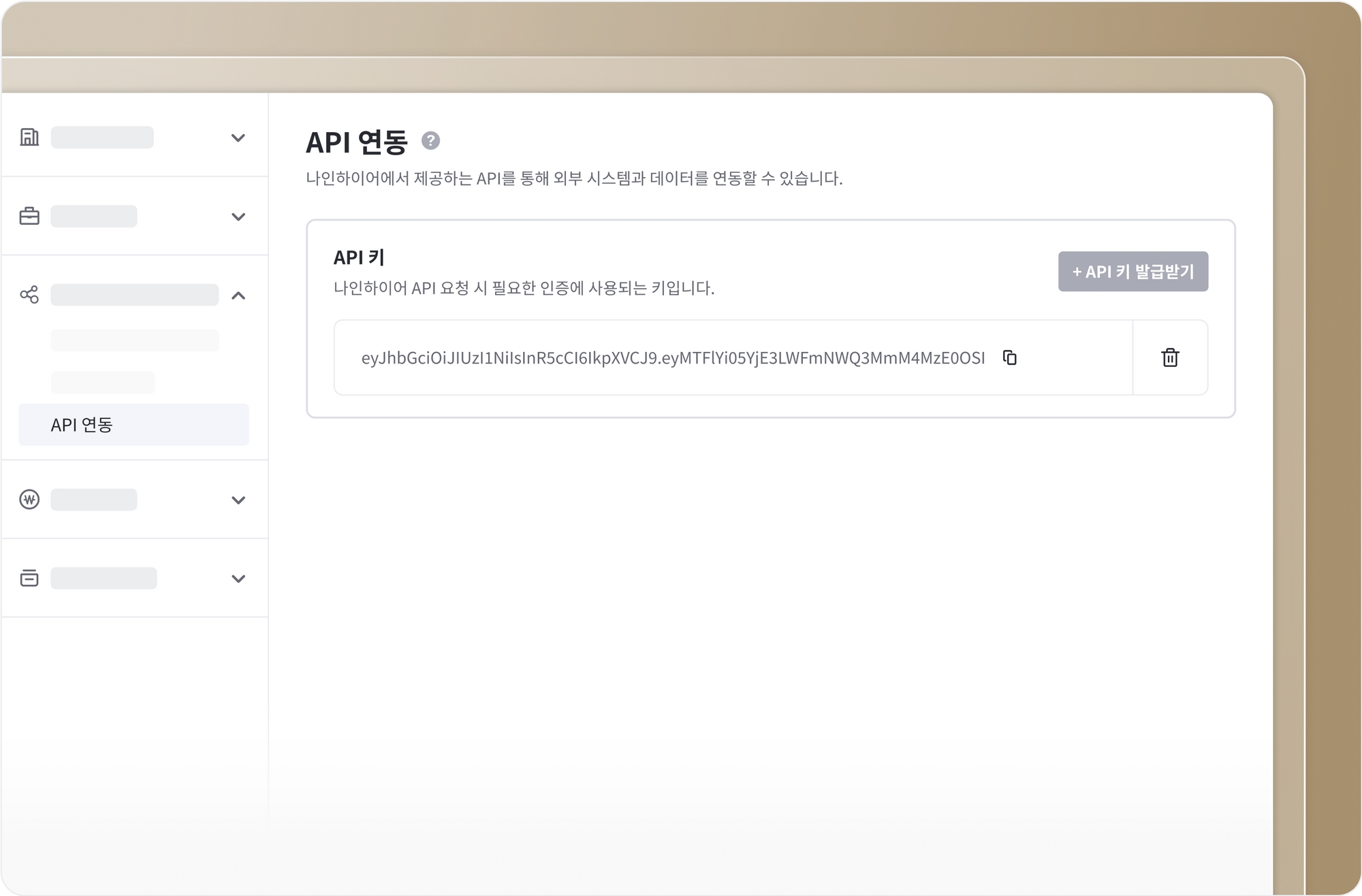 나인하이어와 외부 시스템을 실시간으로 연동할 수 있도록 API 키를 제공합니다. 자사 채용 홈페이지나 사이트 위젯 등에서 나인하이어의 채용 공고를 불러올 수 있어요.